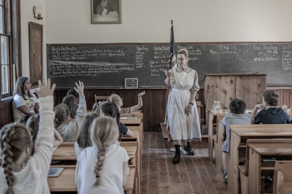 Enjoy this experience within our authentic one-room schoolhouse, guided by trained instructors employing teaching methods and materials true to the 1800s. To fully embrace the era, we encourage students, teachers, and chaperones to dress in attire reminiscent of the 1800s. It’s a hands-on opportunity to step into the past and relive a slice of history.