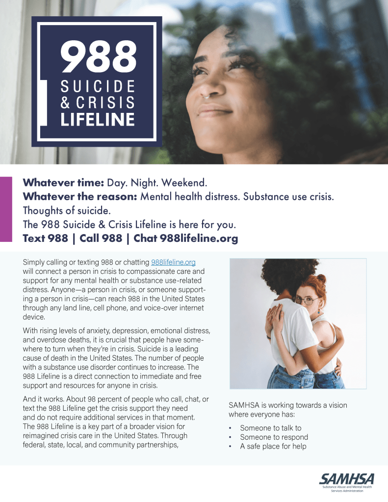With that in mind, please take a moment to familiarize yourself with the 988 LifeLine and share this information far and wide:
