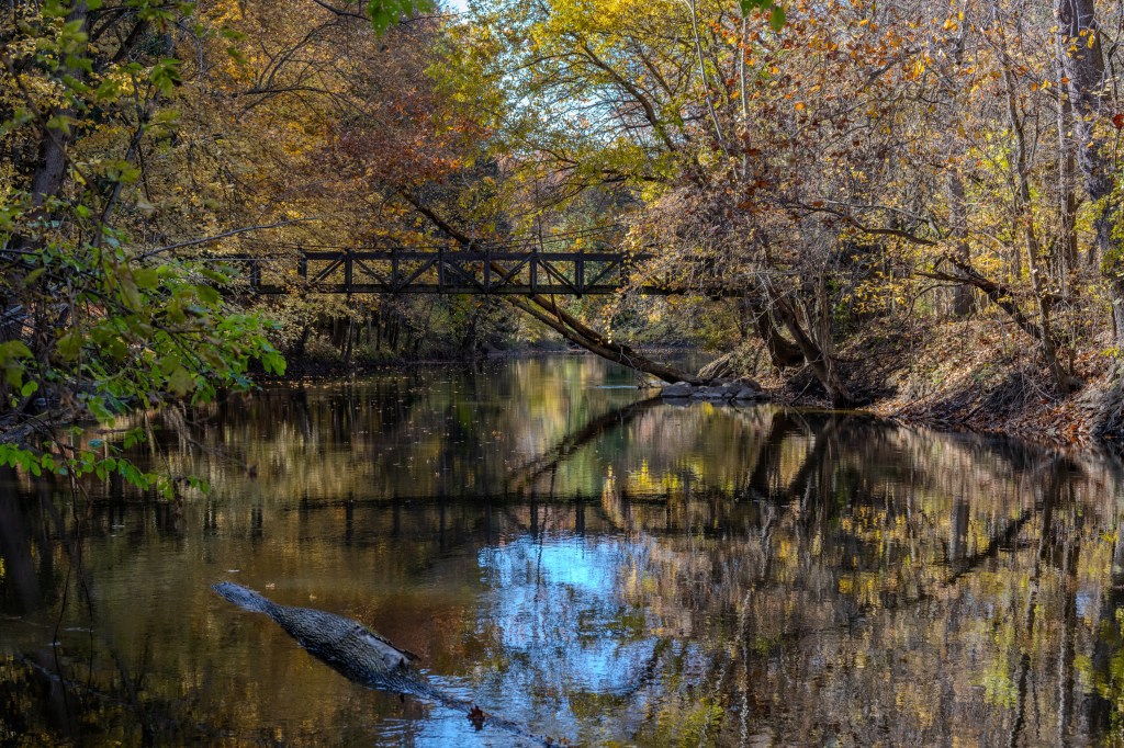 There’s also the 90-feet-long historic foot bridge, built in 1938. It’s a great place to go in the fall for a walk or a bike ride!