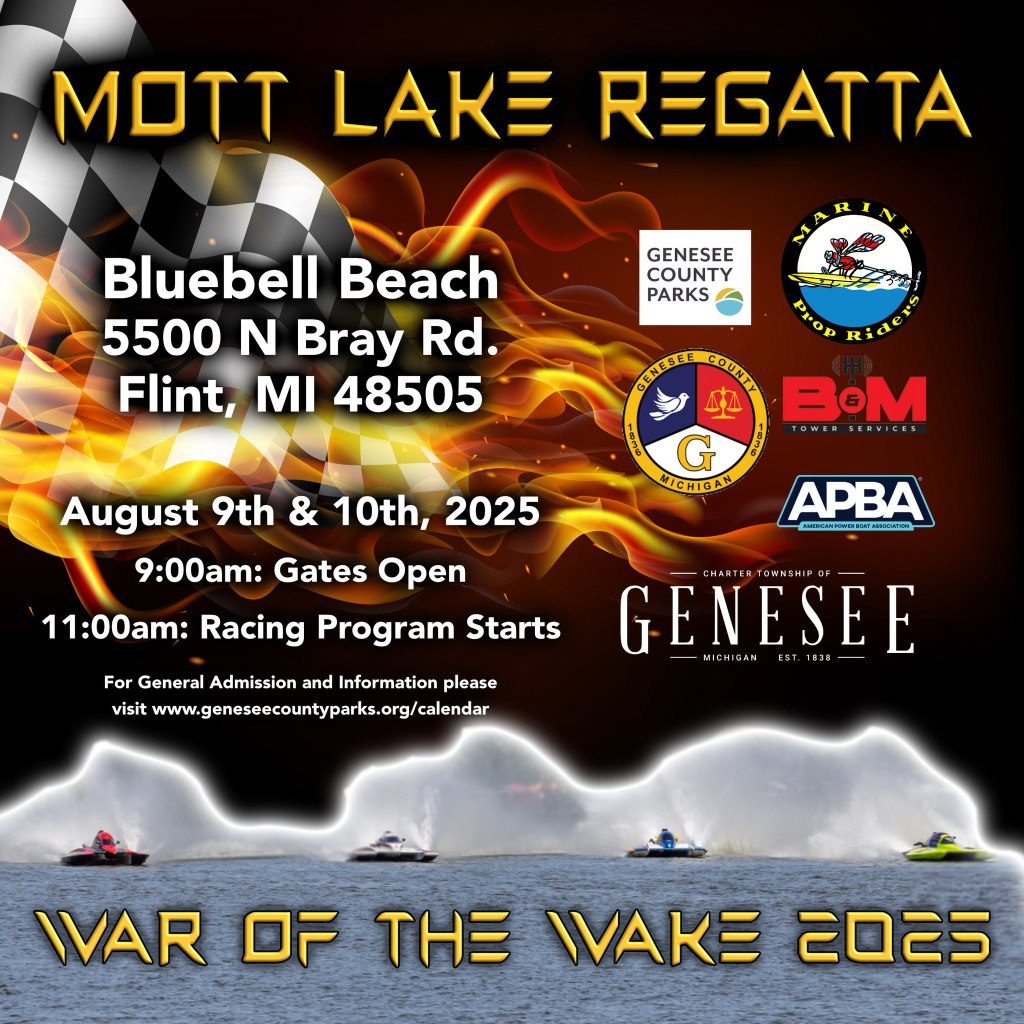 Genesee County, MI — Mark your calendars for August 9-10 as the roar of the Mott Lake Regatta returns to beautiful Bluebell Beach. Feel the adrenaline rush as hydroplane boats speed across the water at incredible speeds, creating waves of excitement and fun for all ages.
