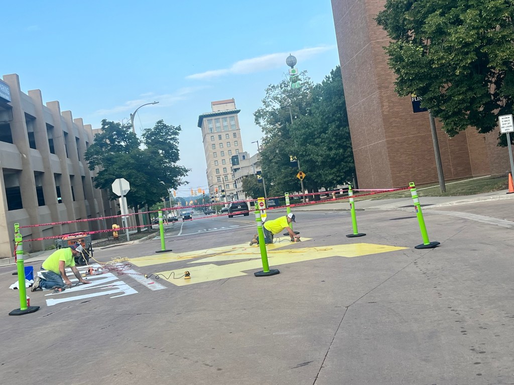 We got a glimpse this week of the big block ‘M’ getting freshened up on the campus of UM-Flint.