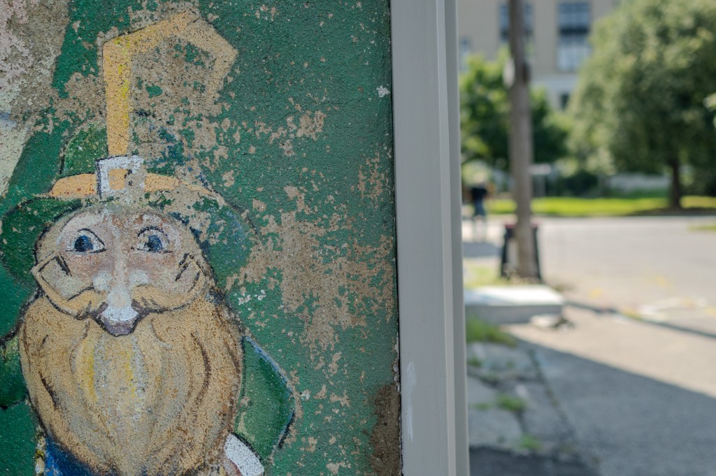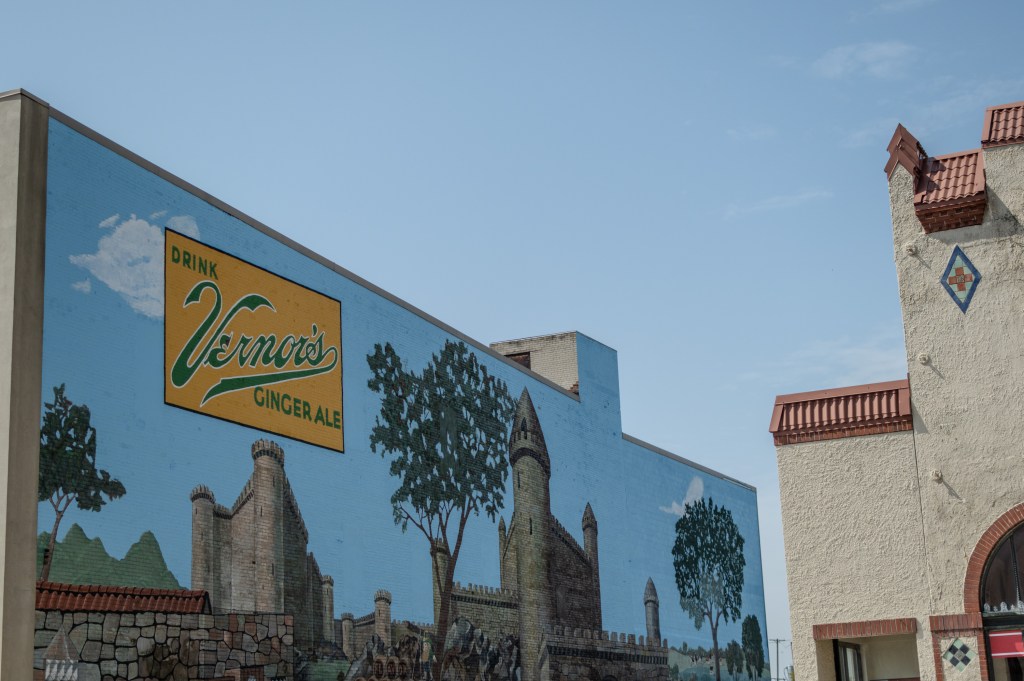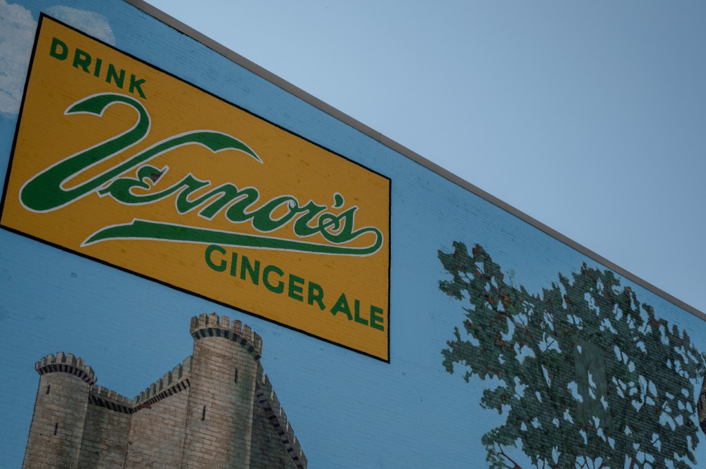 On Friday, we spent some time with Joe Katrinic and Steve Heddy, taking a break from the meticulous work of restoring the iconic Vernor’s mural in downtown Flint, originally painted in 1932. The project should be done in a couple weeks.