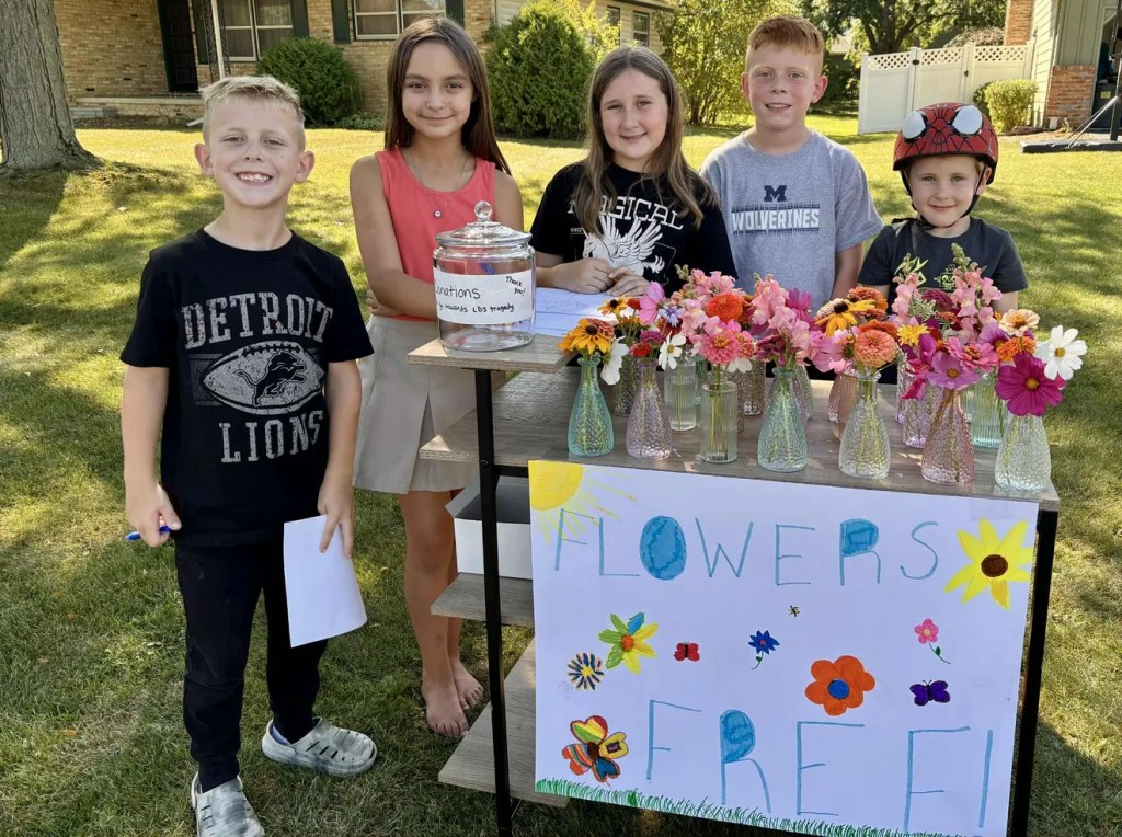 “We heard the giant thing that happened, and so we decided to make people’s day, so we did the flower stand,” Evelyn told the Free Press.
