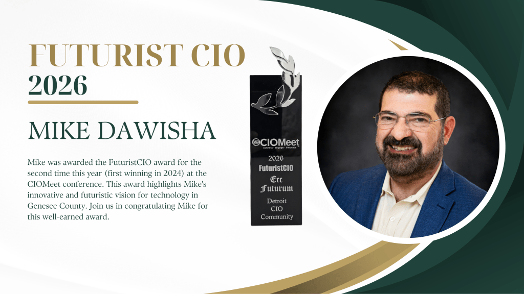 Genesee County is proud to celebrate Chief Information Officer Mike Dawisha on being named a 2026 FuturistCIO Award recipient at the CIOMeet conference.
