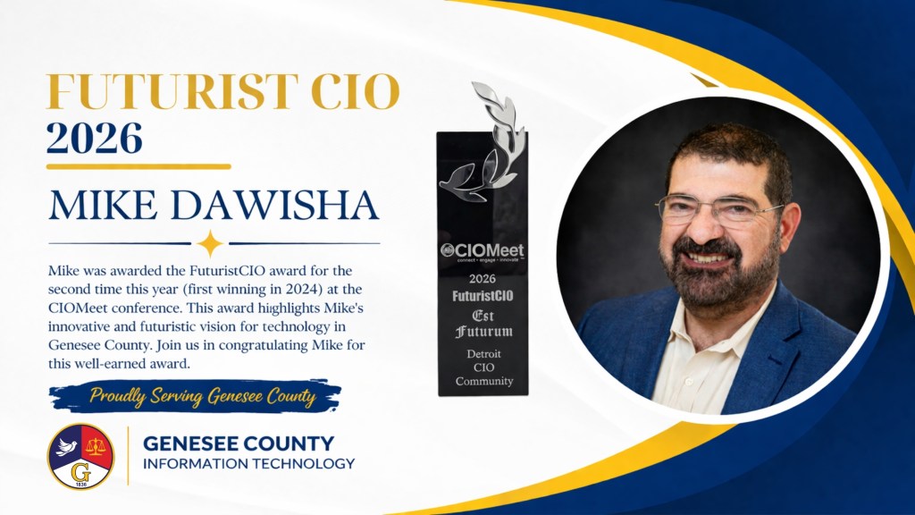 Under Mike’s leadership, Genesee County continues to embrace technology to strengthen public service, improve operations, and help prepare our organization for the future. His commitment to innovation reflects the county’s ongoing efforts to better serve residents through smart, strategic progress.